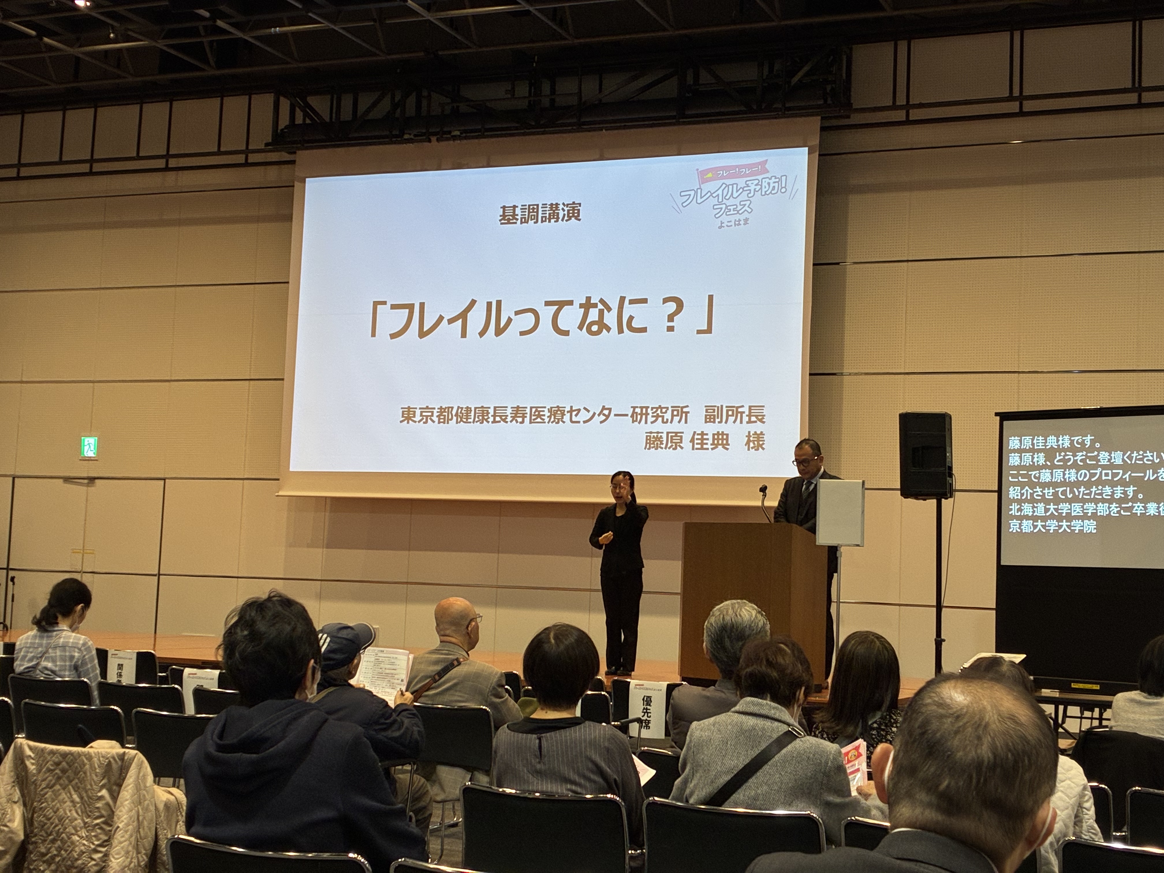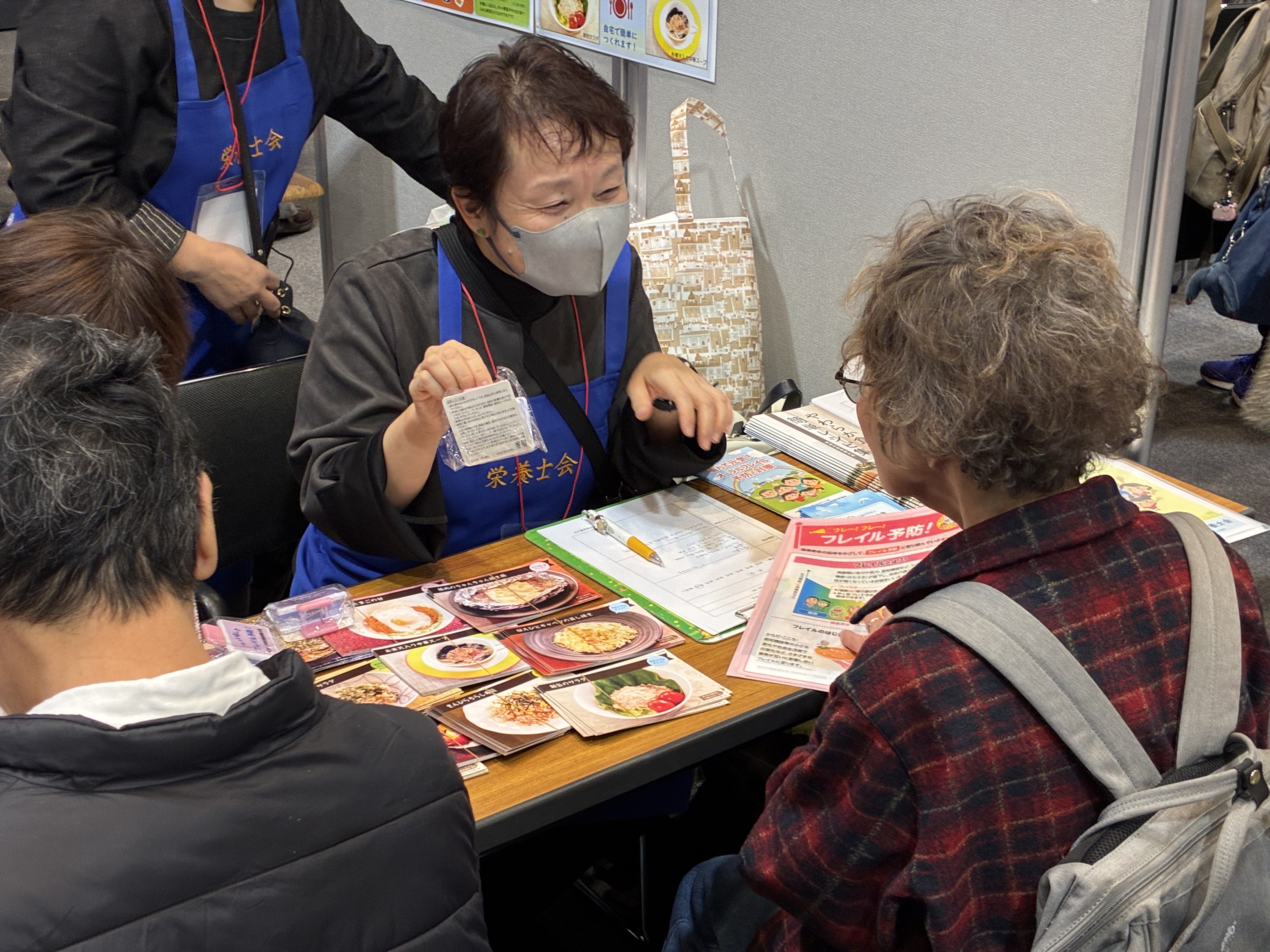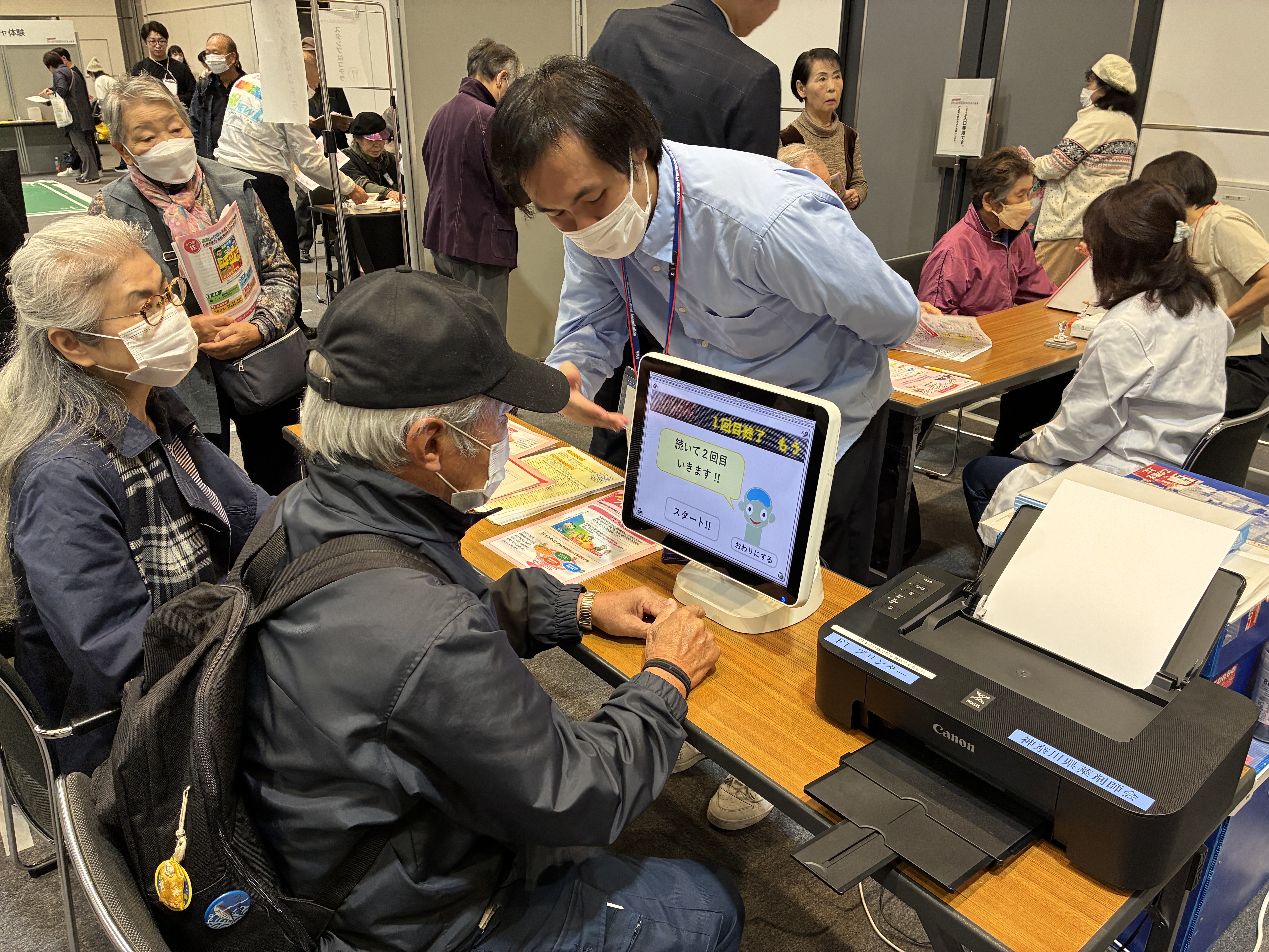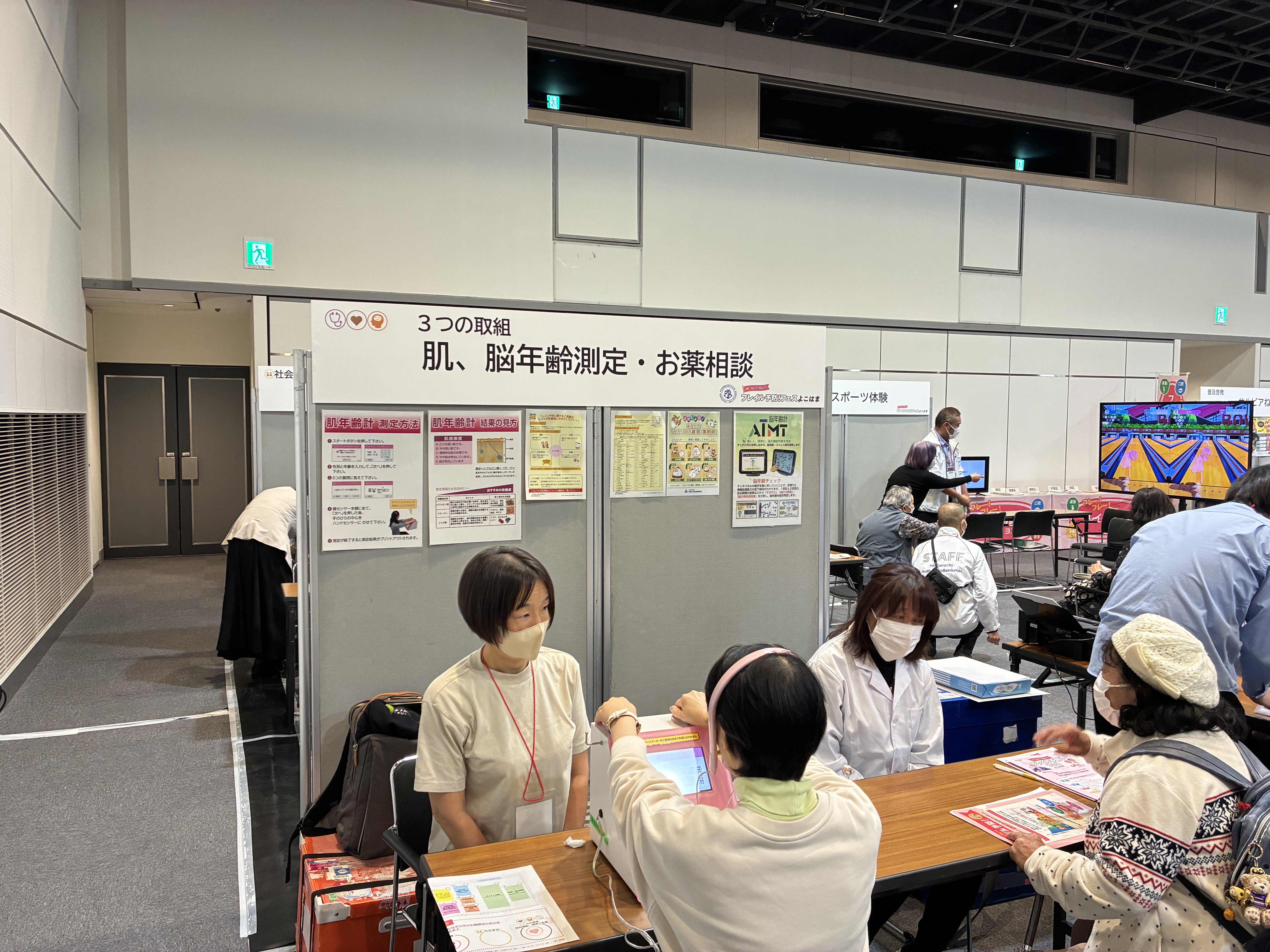 このブースでは、お薬に関する相談や肌年齢、脳年齢の測定を行っていました。ブースを運営する薬剤師会の会長によれば、「フレイルという言葉を知らない人も、まず知ることが予防の第一歩」とのこと。自分の状態を数値で知ろうと、参加者は真剣に取り組んでいました。