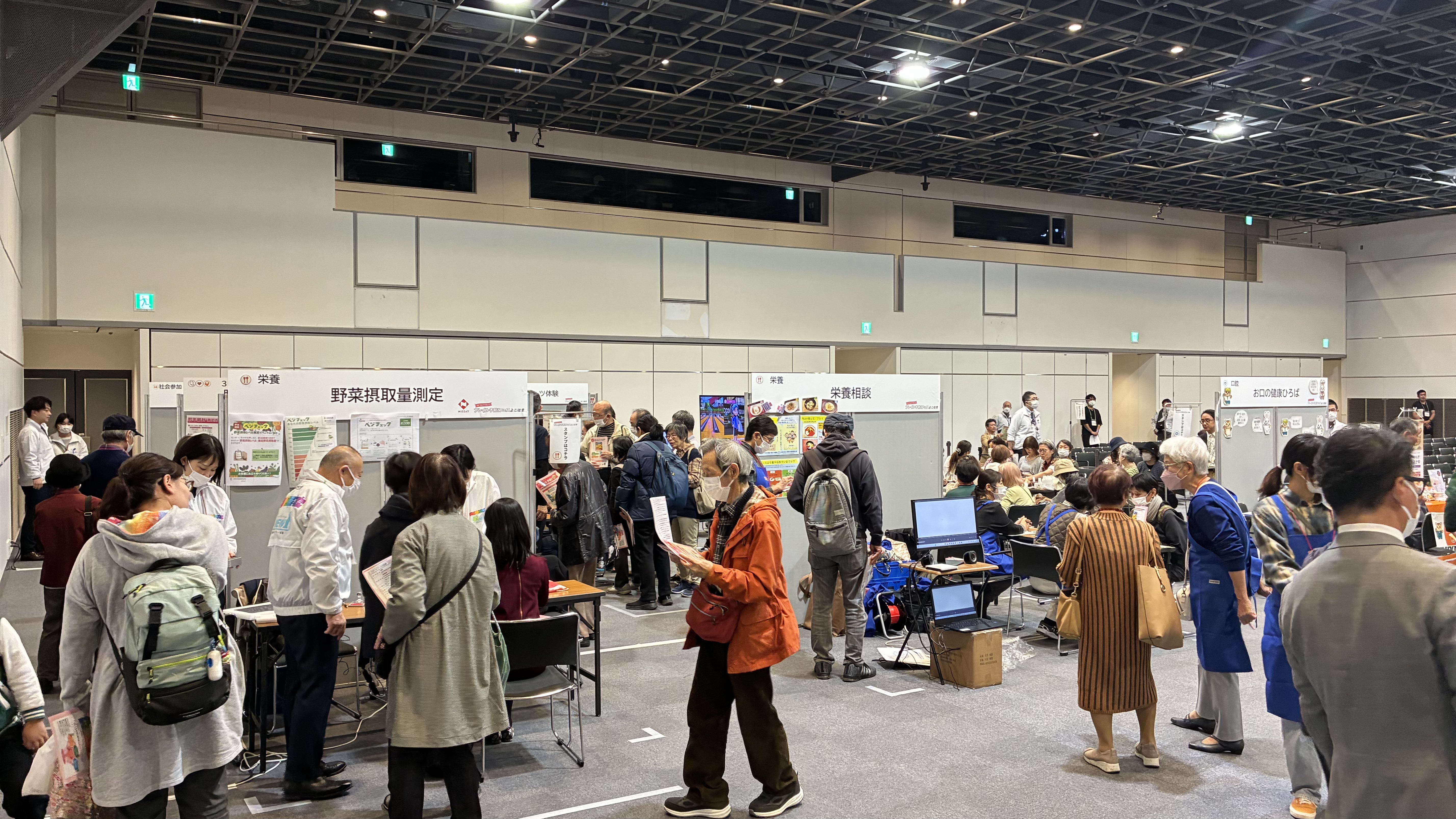 このブースでは、手のひらで簡単にチェックできる野菜摂取量測定が実施されていました。測定結果に思わず胸をなでおろす参加者も見られました。「今日から少しずつ、百歳人生を見据えた食生活を始めましょう」そんなブーススタッフの優しい声かけに、参加者は前向きな表情で頷いていました。